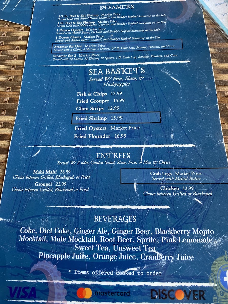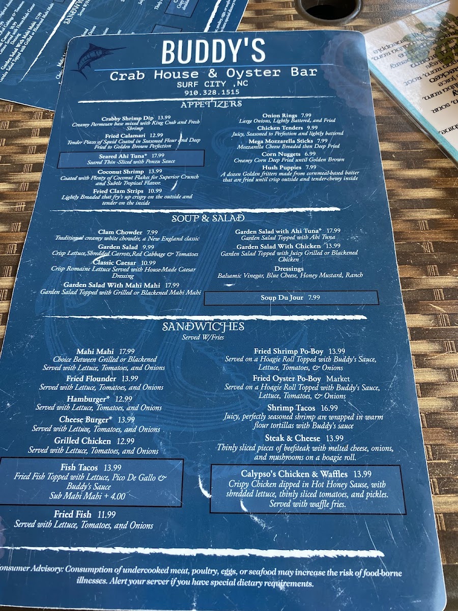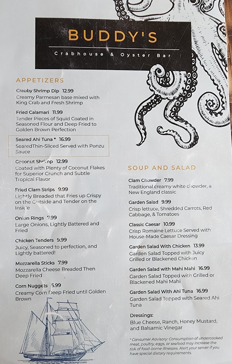 Buddy's Crab House & Oyster Bar Menu